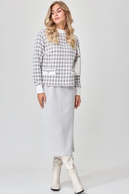 Костюм с юбкой 542 клетка баклажан LAIKONY