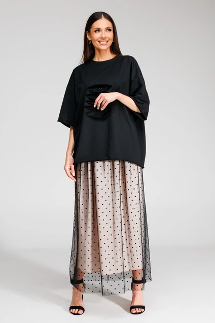 Стильный комплект, состоящий из майки оверсайз и роскошной юбки из фатина.