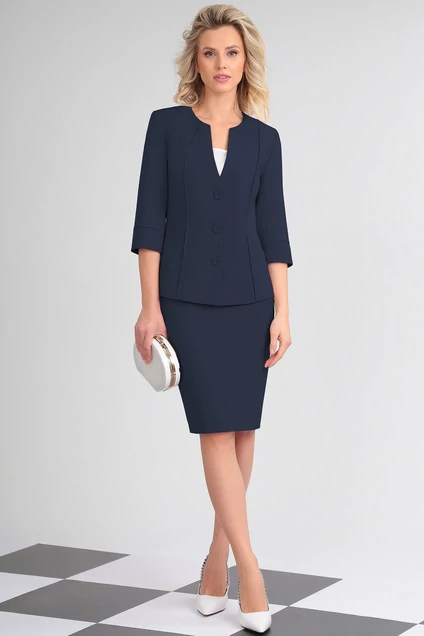Костюм с юбкой 31318 синий LeNata