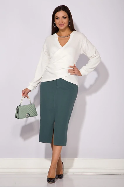 Костюм с юбкой 1252-1228 белый + серозеленый Liliana-style
