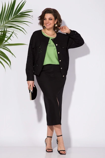 Костюм с юбкой 1312К черный + зелень Liliana-style