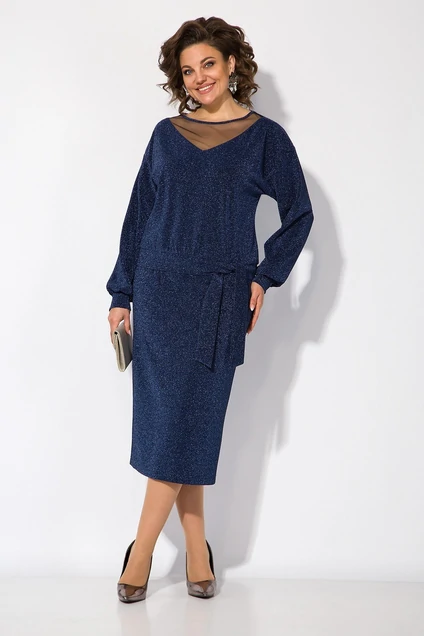 Роскошный нарядный юбочный костюм, состоящий из блузки и юбки! Модель выполнена из мягкого, комфортного трикотажного полотна с изнанки однотонного, с лица с эффектом мерцания. Блузка с округлым вырезом горловины, с V-образной кокеткой из сетки. Плечевой пояс спущенный с длинным рукавом присборенным на манжеты. Низ оформлен притачной планкой-поясом, переходящий в завязку. Юбка французской длины, за колено; на притачном поясе и трикотажной подкладке. По спинке предусмотрен разрез на свободу движения.