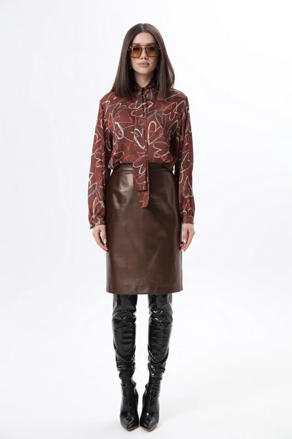 Комплект 2ка,состоящий из блузки и юбки. Элегантная блуза из легкой струящегося шифона с легким блеском. Актуальный принт "сердца", объёмного кроя и декоративные завязки на горловине. По переду блузы прошиты нагрудные вытачки. Манжеты с застёжкой на пуговицу. Юбка-карандаш на подкладке. Пояс с застежкой молнией по среднему шву спинки и пуговица. Рост фотомодели 175 см. Размер у фотомодели – 44. СОВЕТ ОТ СТИЛИСТА: Для "смягчения" образа разбавьте светлым пальто и ботильонами, а для образа на каждый день советуем обуть лоферы на платформе. Дополнить комплект можно жакетом (артикул костюма К3051/3). юбка- 80% полиэстер , 20% вискоза