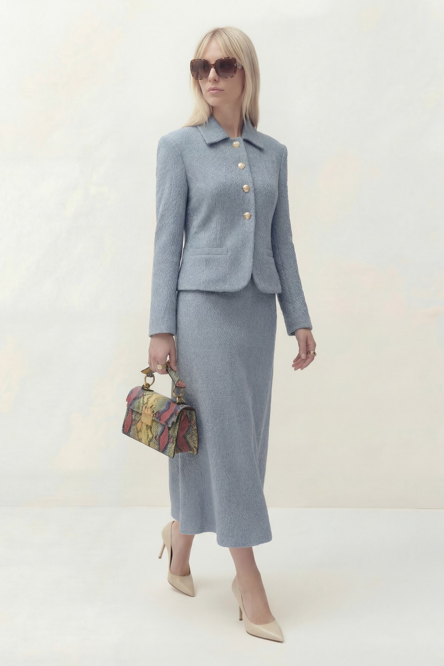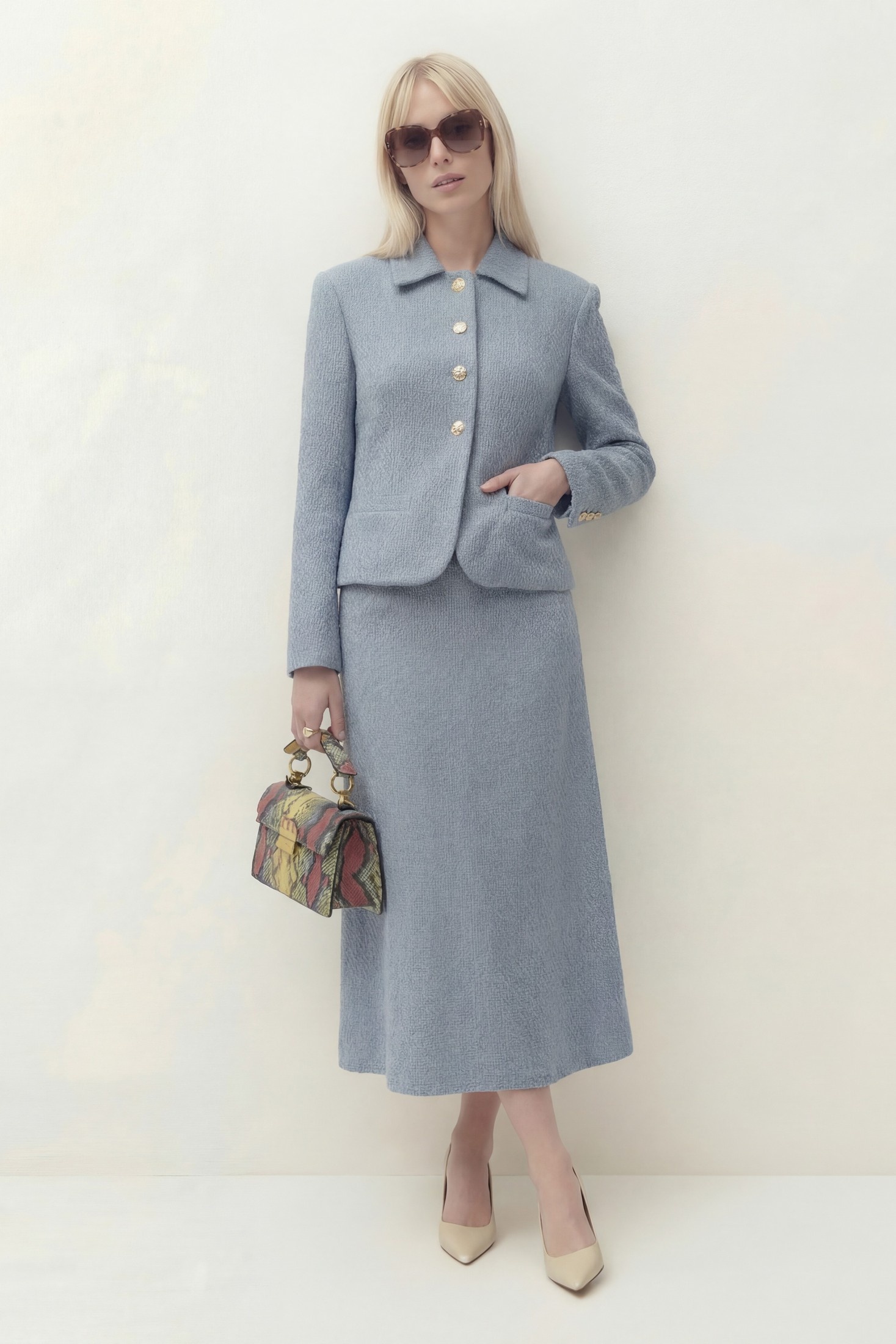Костюм с юбкой 1831 голубой Lokka идеально подходит для создания стильного делового образа. Коллекция бренда Lokka предлагает жакет полуприлегающего силуэта с рубашечным воротником и центральной застежкой на пуговицы. Практичные прорезные карманы добавляют удобства, а юбка на притачном поясе с потайной молнией дополняет элегантный комплект. Изделие выполнено из полиэстера и хлопка с добавлением спандекса, что делает его прочным и комфортным в носке. Голубой цвет костюма подходит для любого сезона и подчеркивает свежесть вашего образа.