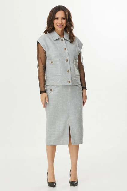 Костюм с юбкой 2392 серый+ черный Магия Моды