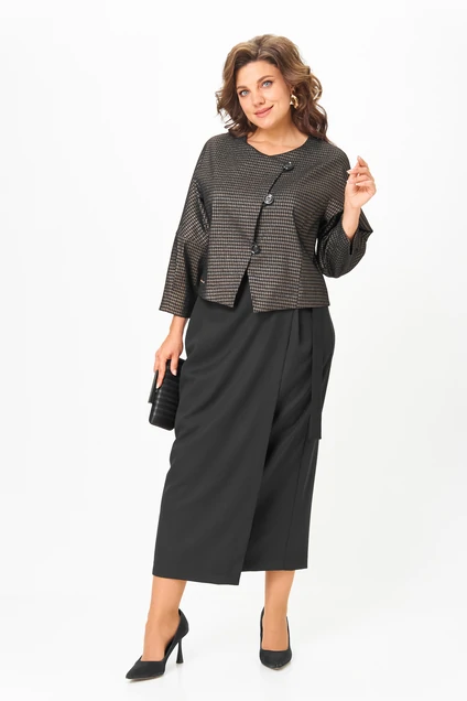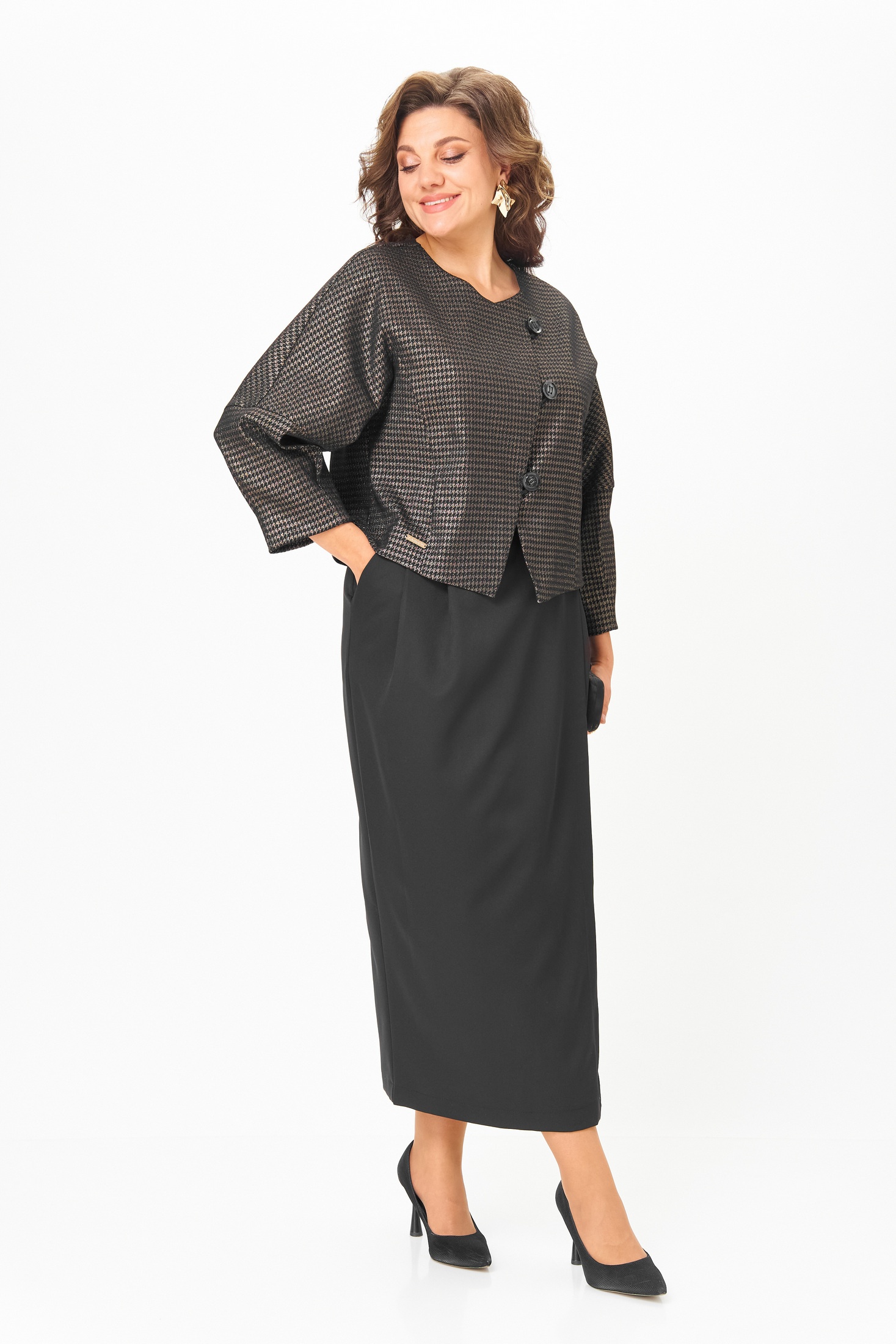 Костюм с юбкой 1443 черный + золото Michel Chic