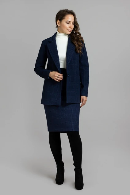 Комплект состоит из Жакета и Юбки. Теплый, классический Жакет полуприлегающего силуэта, передние части с рельефами и карманами в шве , спинка со средним швом и рельефами, застёжка на 2 петли и пуговицы. Рукав втачной, двухшовный . На подкладке.