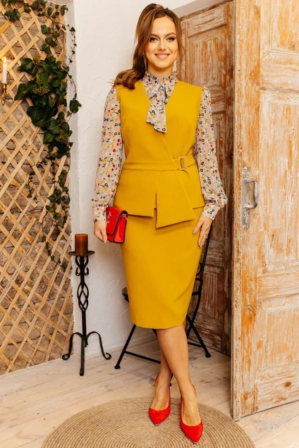 Костюм с юбкой 2538 горчица Мода-Юрс