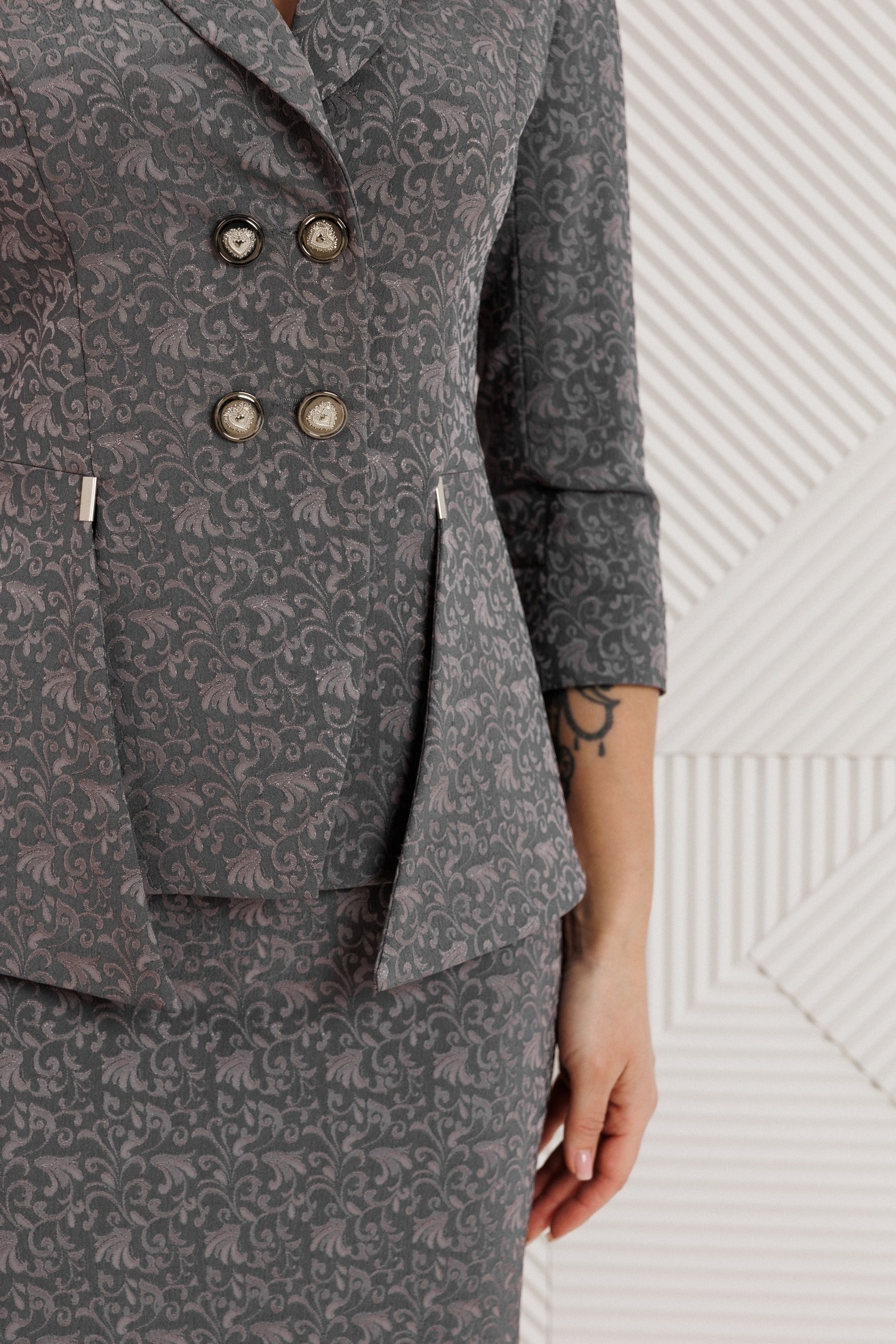 Костюм с юбкой 26-2768 серый жаккард Мода-Юрс