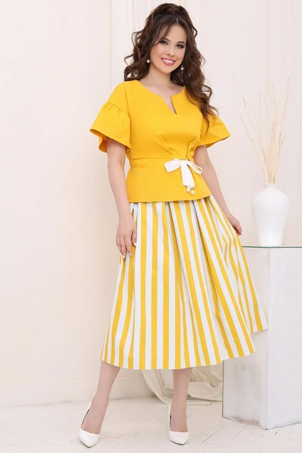 Костюм с юбкой 2688-1 желтый + полоска Мода-Юрс
