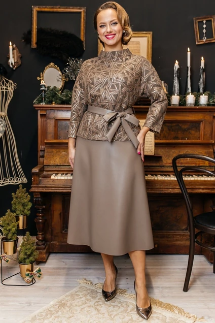 Костюм с юбкой 2718-2 темный беж Мода-Юрс