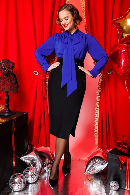 Костюм с юбкой 2789 василёк + черный Мода-Юрс