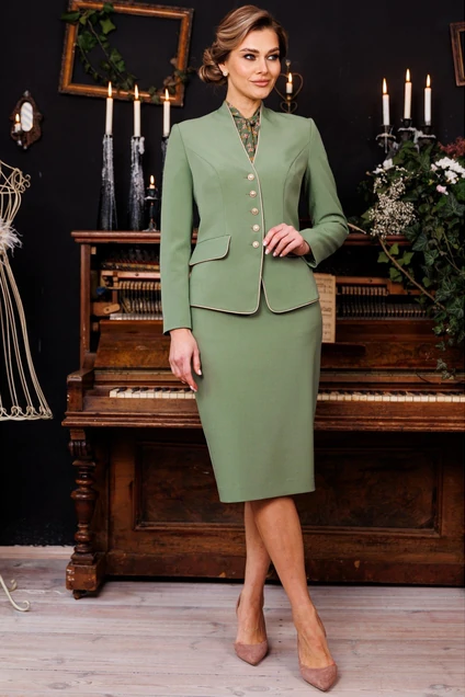Костюм с юбкой 2808-1 хаки Мода-Юрс