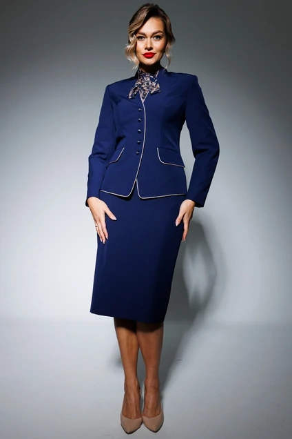 *Костюм с юбкой 2808-1 синий + бежевый Мода-Юрс