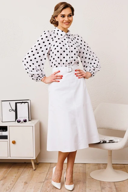 Костюм с юбкой 2846 белый + горох Мода-Юрс