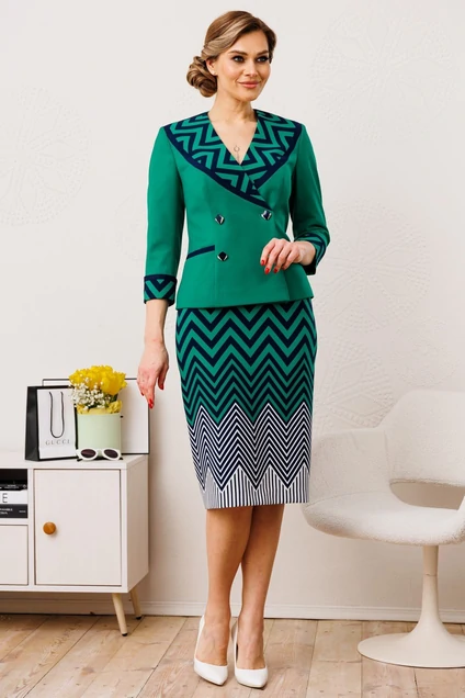 *Костюм с юбкой 2851-0 зеленый Мода-Юрс