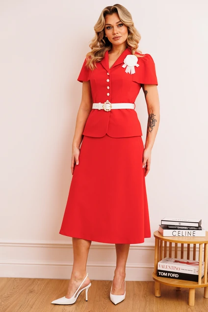 Костюм с юбкой 26-2892 алый Мода-Юрс