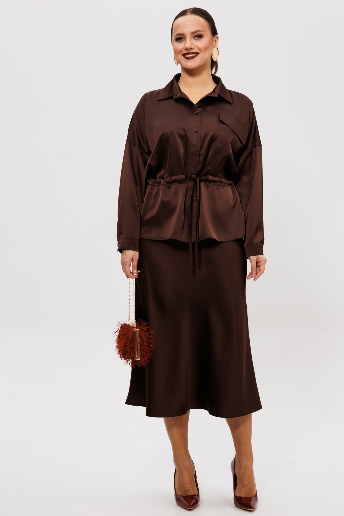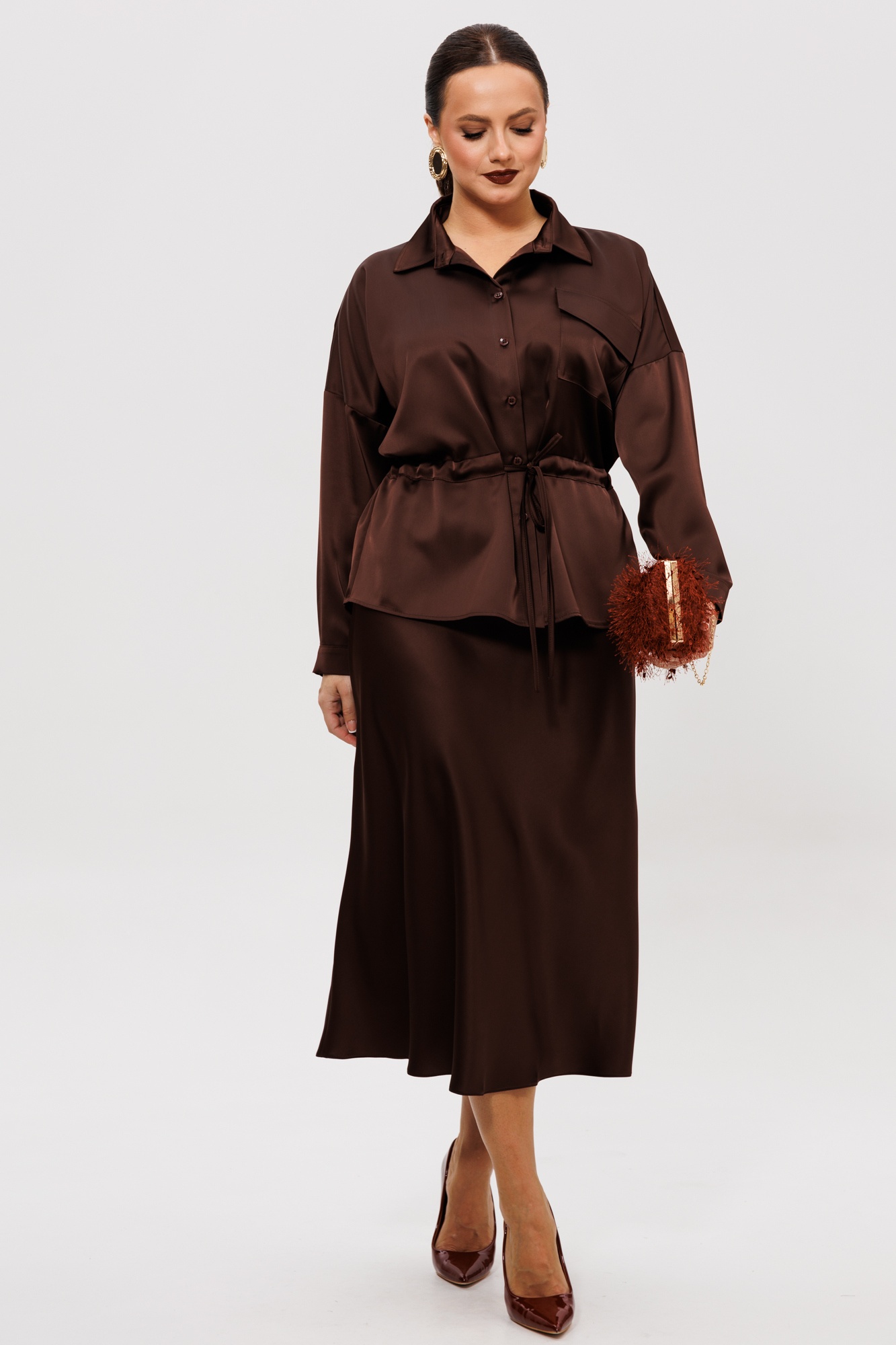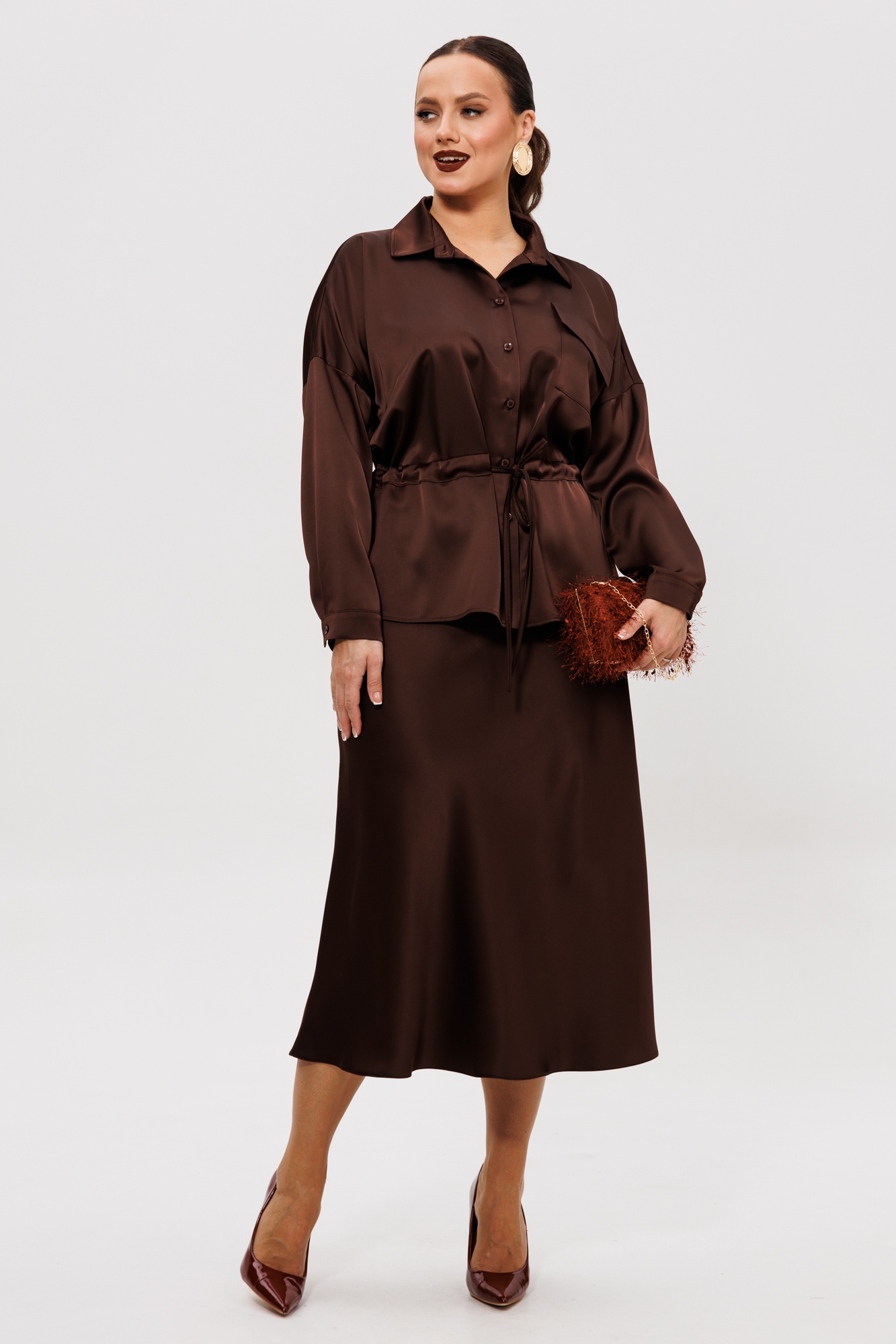 Нарядный юбочный костюм, выполненный из струящегося шелка «Армани» (тянется).