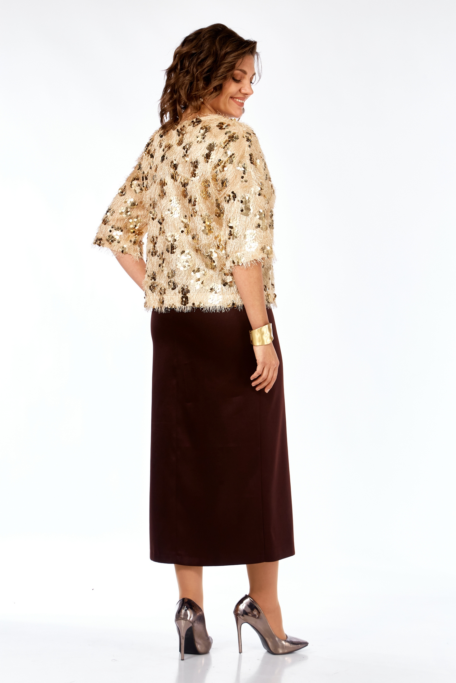 Костюм с юбкой 433 золото + коричневый Ольга Стиль