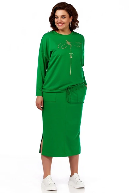 Костюм с юбкой 794 зеленый Ольга Стиль