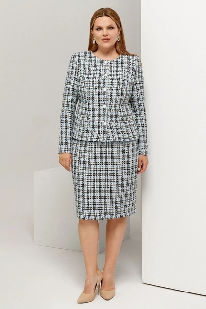 Утепленный костюм женский – находка для вашего гардероба. Он выполнен в классическом стиле и подойдет под любой дресс-код. В нем уместно отправиться в офис, на мероприятие, семинар, ужин с партнерами. Комплект состоит из жакета с длинным рукавом на пуговицах и имитацией прорезных карманов. Юбка прямая, длиной ниже колена. Женский костюм большого размера хорошо садится по фигуре, визуально корректируя мелкие недостатки за счет расцветки. Женский деловой костюм с юбкой создан для женщин с пышными формами. Вы можете купить его в наиболее популярных размерах - от 46 до 54.