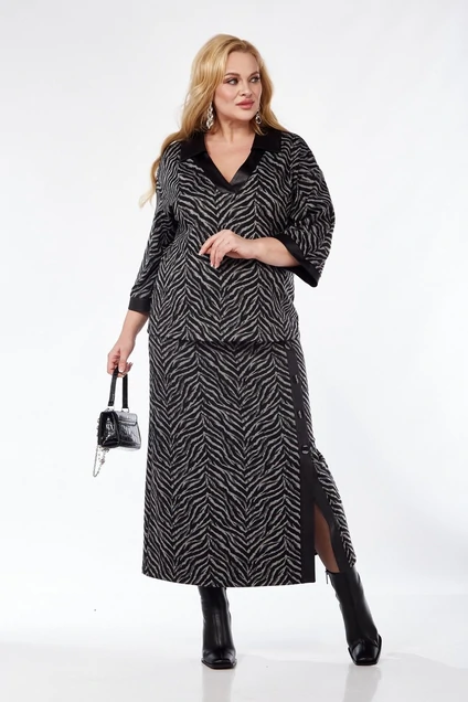 Комплект-двойка из трикотажной юбки и джемпера с V-образным вырезом горловины.