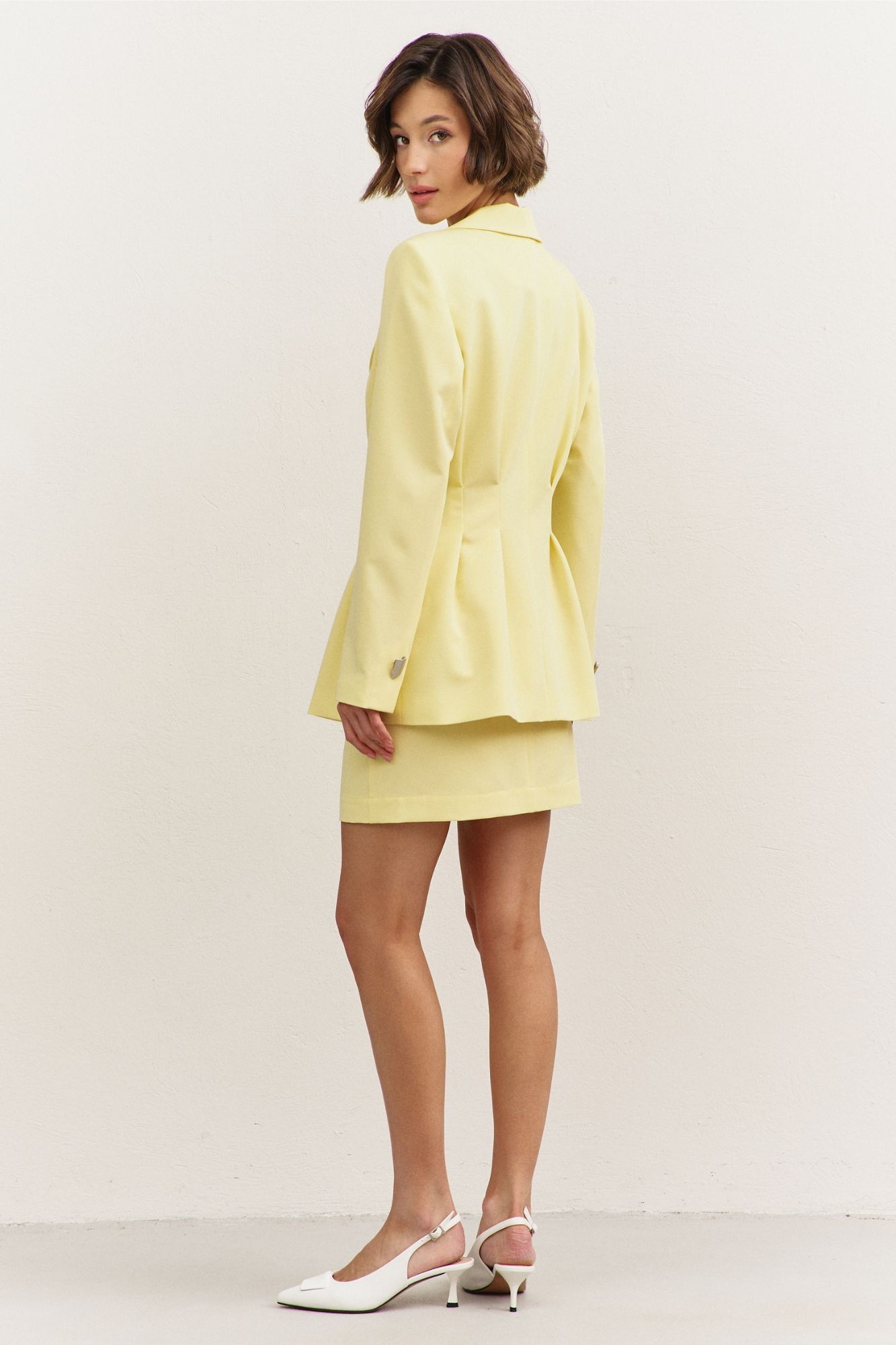 Костюм с юбкой 1489-1 RINKA предлагает стильную комбинацию жакета и мини-юбки, выполненных из прочной костюмной ткани с содержанием 65% вискозы, которая дарит мягкость и комфорт. Коллекция бренда RINKA подчеркивает вашу индивидуальность через элегантный полуприлегающий силуэт и застроченные складки в области талии. Двушовные, втачные рукава завершают образ, создавая идеальный силуэт для офисного или делового стиля. Яркий желтый цвет приносит летнее настроение, а пиджачный воротник добавляет классики. Подкладка и плечевые накладки обеспечивают долговечность и комфорт. Идеально подходит для весенне-летних сезонов.