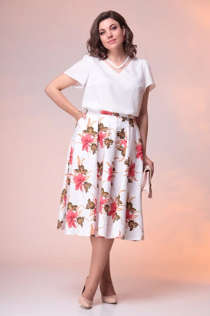Костюм с юбкой 2-2389 белый + хаки Romanovich style