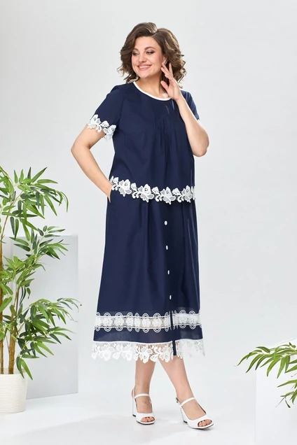 Костюм с юбкой 2-2520 синий Romanovich style