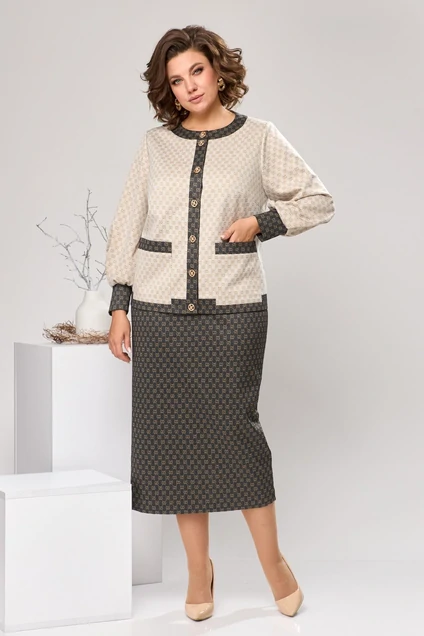 Костюм с юбкой 2-2606 графит + бежевый Romanovich style