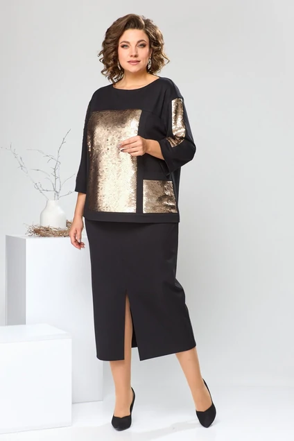 Костюм с юбкой 2-2613 чёрный Romanovich style