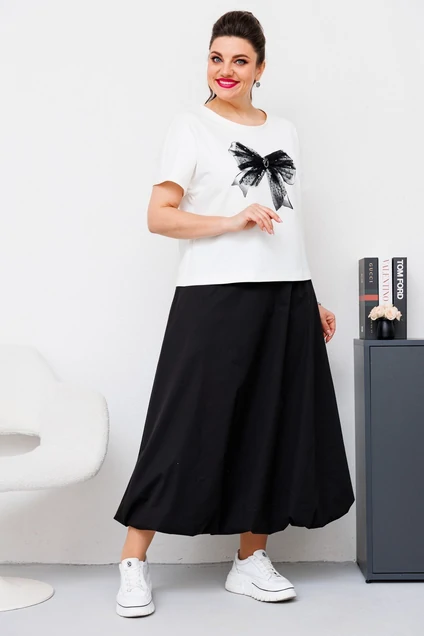 Костюм с юбкой 2-2663 белый + чёрный Romanovich style