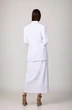 Комплект, состоящий из жакета и юбки, из джинсовой ткани на подкладке. Жакет с расширенной линией плеч, с отрезными бочками по переду и спинке и вытачками по переду. Воротник-с отложными лацканами пиджачного типа. По переду - прорезные карманы с клапанами. Рукава длинные, двухшовные. Жакет застегивается на три пуговицы. Юбка - миди с наклонными карманами и складкой по переду, с широким поясом-обтачкой. Застегиваются на молнию спереди и пуговицу. Цвет белый.