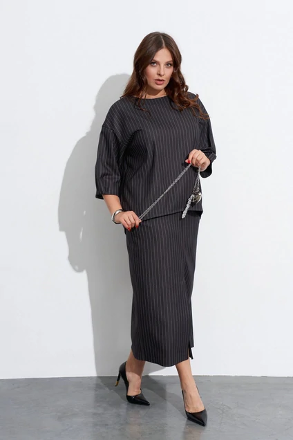 Костюм с юбкой 5584 полоска + графит TEZA