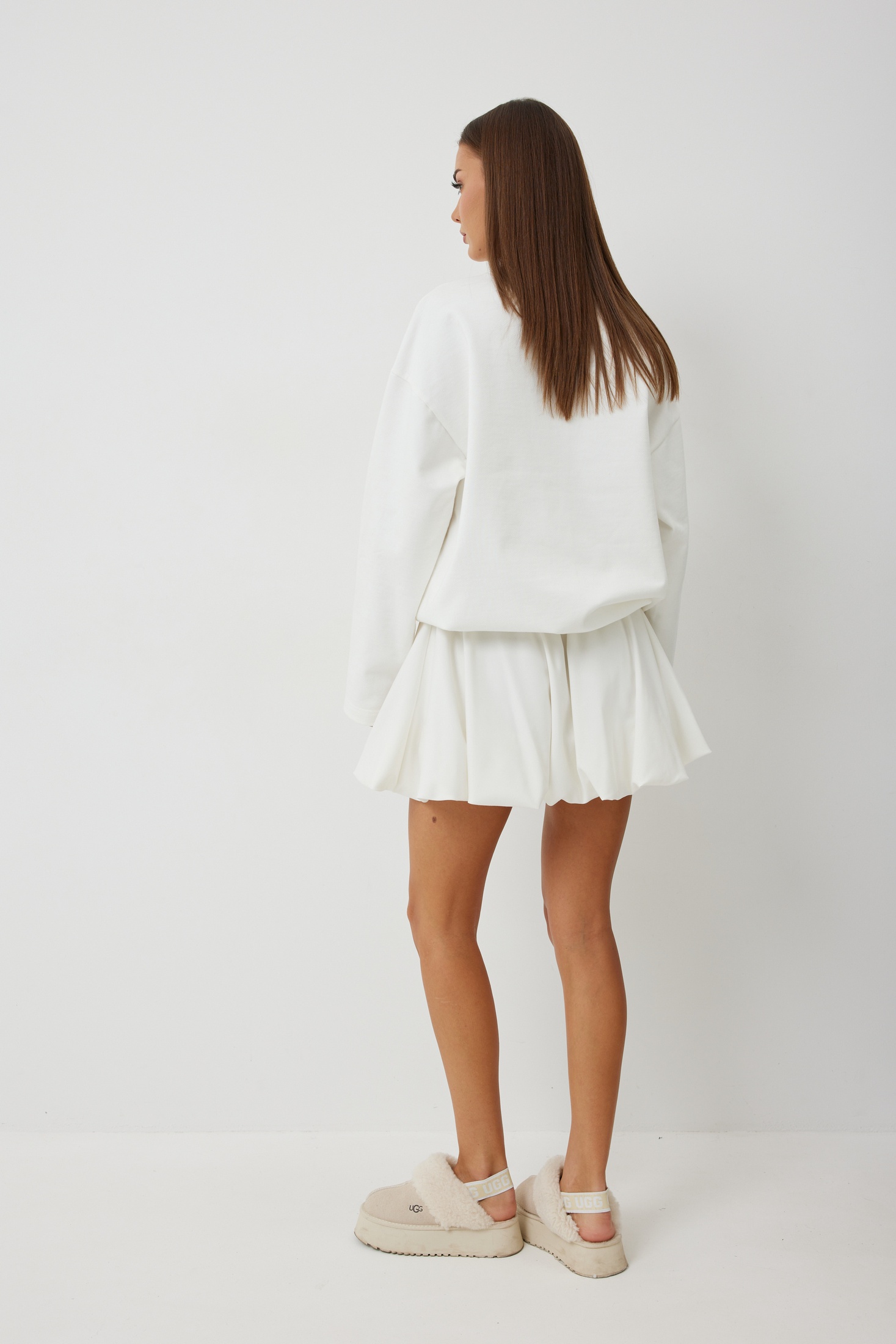 Костюм с юбкой 1132 белый V&N fashion предлагает стильное сочетание современного дизайна и комфорта. Коллекция бренда V&N fashion выполнена из мягкого хлопка с добавлением эластана, обеспечивая отличную посадку и долговечность. Свитшот свободного кроя с круглыми вырезами и втачными длинными рукавами делает образ уютным и расслабленным, идеально подходит для повседневного или прогулочного стиля. Низ изделия подчеркнут шляпочной резинкой с фиксатором для дополнительного удобства. Юбка-парашют оснащена эластичной тесьмой на поясе и подкладкой, придающей объем и структуру. Белый цвет костюма делает его универсальным решением для весенне-летнего сезона.