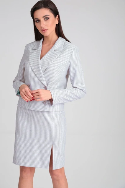 Костюм с юбкой 2149 бирюза + клетка VeritaModa