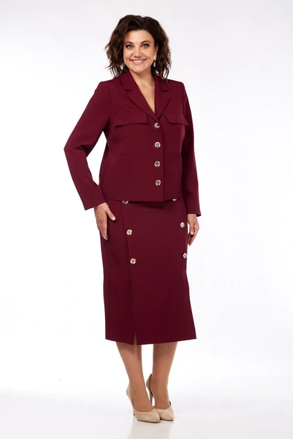 Костюм с юбкой 1086 винный VI ORO