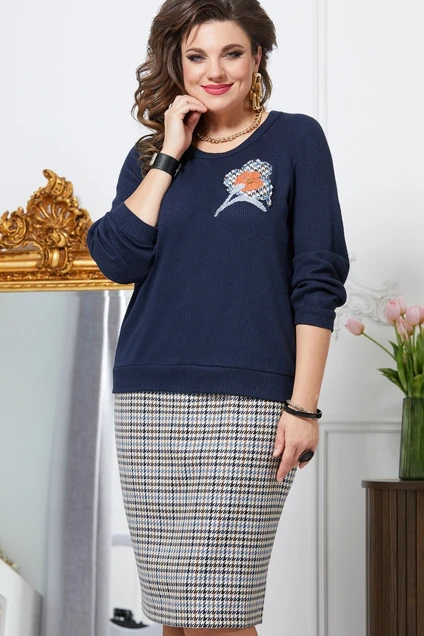 Костюм с юбкой 17483 темно-синий + гусиная лапка Vittoria Queen