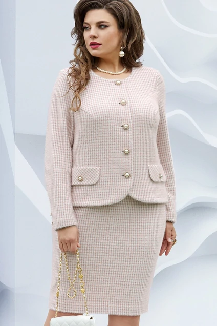 *Костюм с юбкой 19133 клетка пудрово-розовый Vittoria Queen