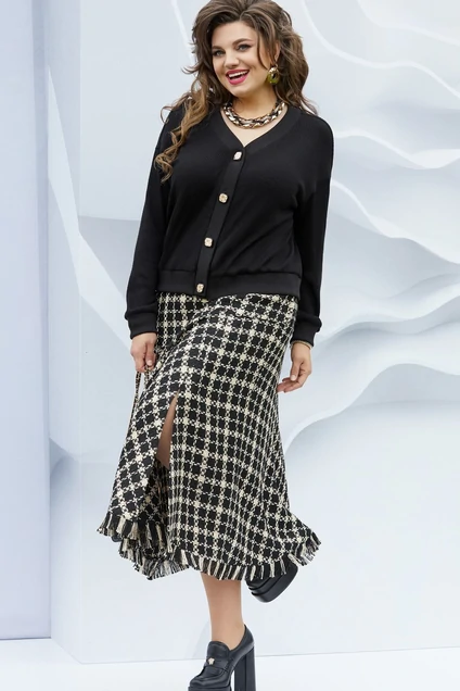 Костюм с юбкой 19323 черный + клетка Vittoria Queen