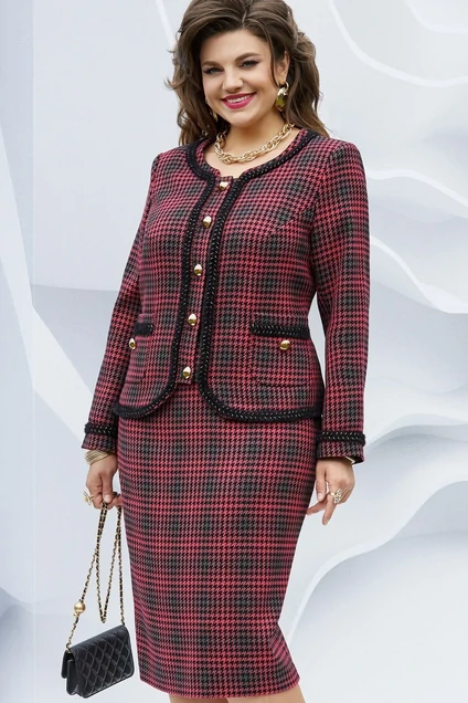 Костюм с юбкой 19863 гусиная лапка фуксия + черный Vittoria Queen