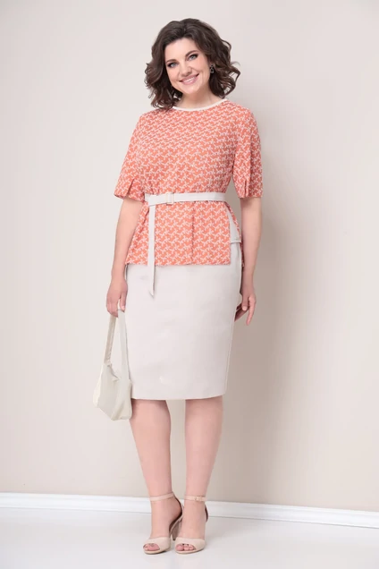 Костюм с юбкой 1247 персиково-бежевый VOLNA