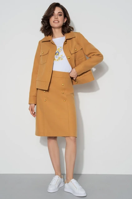 Тип ткани на жакет и юбку: пальтовая Состав подкладочной ткани: полиэстер 100%.
