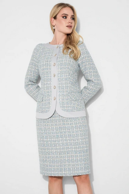 Рост - 164-170 см Средняя длина жакета по середине спинки –62,0 см (±2,0 см), Длина рукава– 61,0 см, средняя длина юбки по среднему шву –60,0 см.