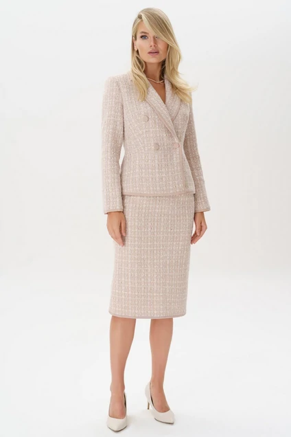 Элегантный женский костюм с юбкой из мягкого твида - идеальный выбор для стильной и уверенной в себе женщины. Выполненный в классических тонах, он подчеркнет вашу женственность и изящество. Такой костюм прекрасно подойдет как для деловых переговоров, так и для вечерних выходов. Дополните образ стильными аксессуарами и обувью на каблуке, чтобы выглядеть безупречно и модно. Костюм женский двухпредметный, состоит из жакета полуприлегающего силуэта, отрезного по линии талии, на подкладке и юбки “годе” на притачной подкладке по низу. Костюм предназначен для повседневной носки.