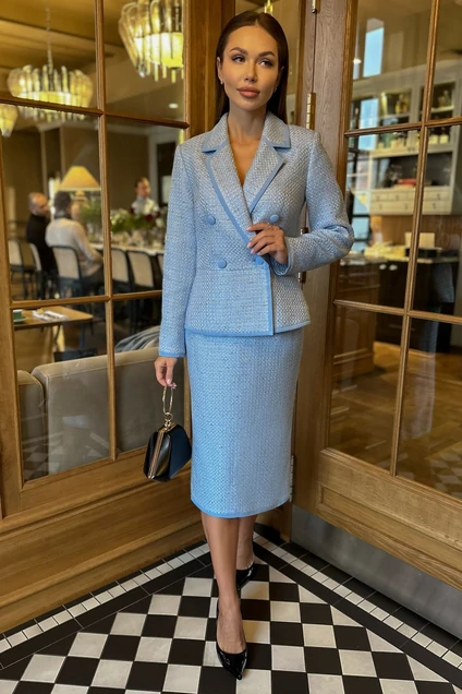 Элегантный женский костюм с юбкой из мягкого твида - идеальный выбор для стильной и уверенной в себе женщины. Выполненный в классических тонах, он подчеркнет вашу женственность и изящество. Такой костюм прекрасно подойдет как для деловых переговоров, так и для вечерних выходов. Дополните образ стильными аксессуарами и обувью на каблуке, чтобы выглядеть безупречно и модно. Костюм женский двухпредметный, состоит из жакета полуприлегающего силуэта, отрезного по линии талии, на подкладке и юбки “годе” на притачной подкладке по низу. Костюм предназначен для повседневной носки.