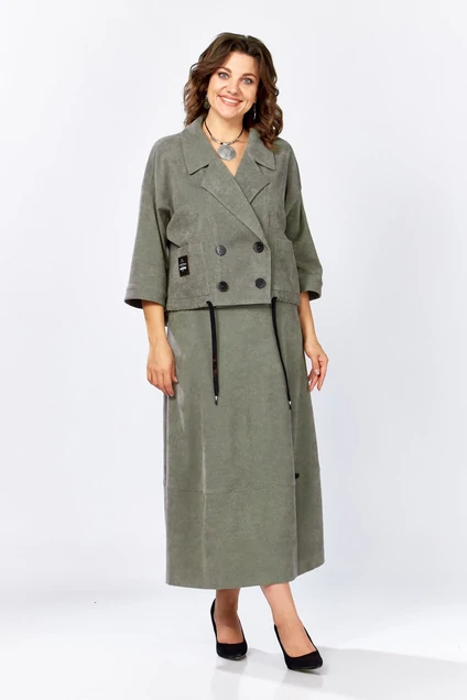 Костюм женский , состоящий из жакета и юбки из мягкой штруксовой ткани без подкладки в красивом серо-фисташковом оттенке.