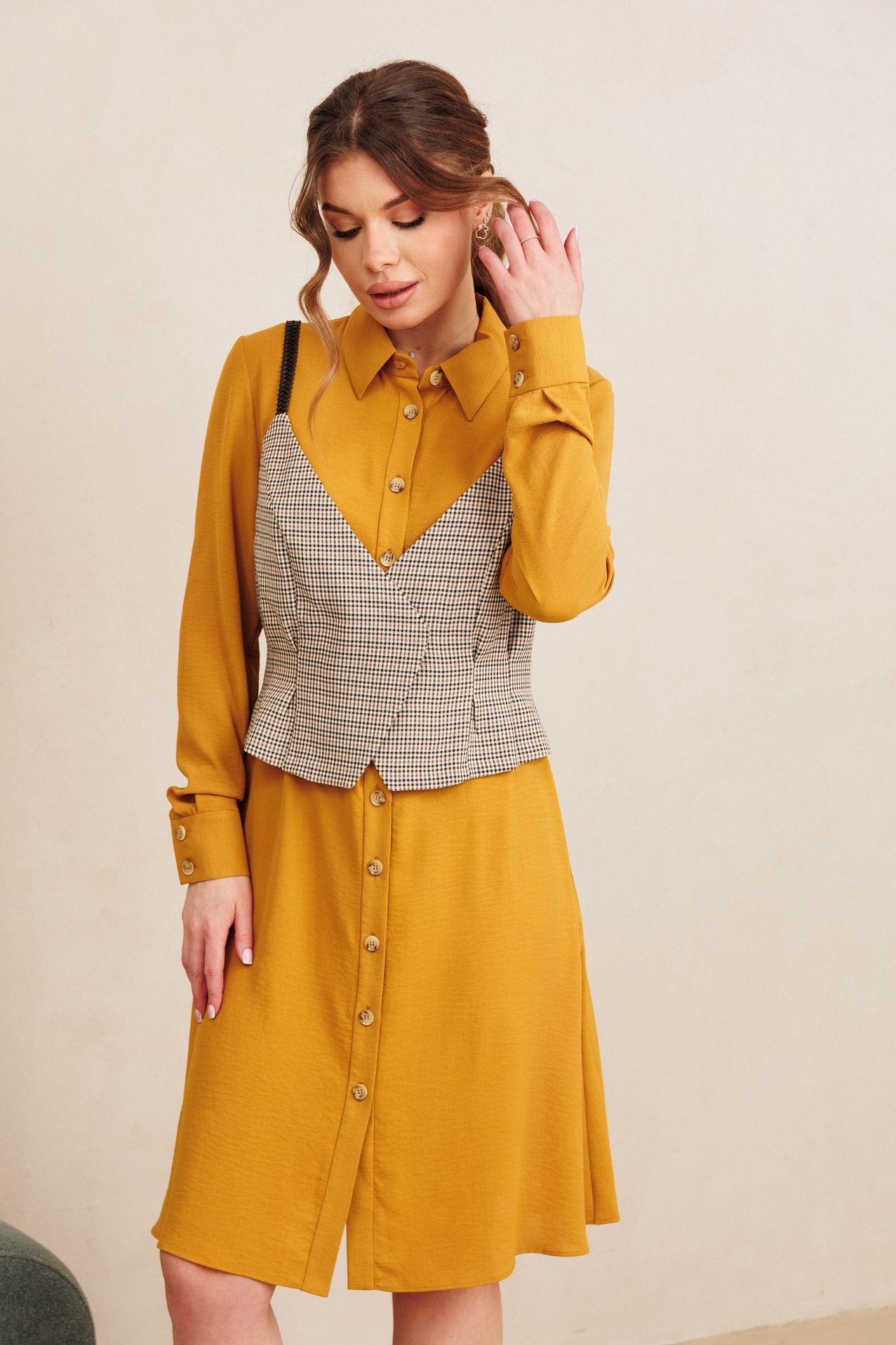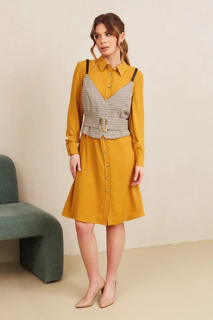 Костюм с платьем 7100 горчица + клетка Amori