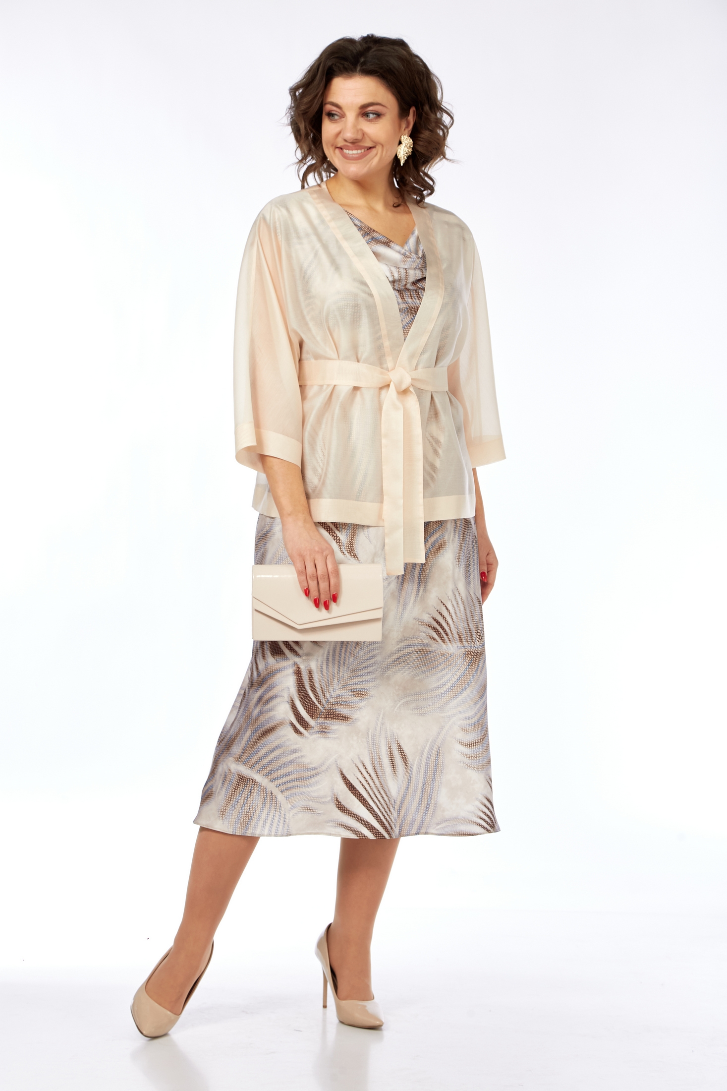 Комплект женский нарядный состоит из платья выполненного из плательно-блузочной ткани сатин с оригинальным дизайном и жакета из полупрозрачной вуали с содержанием вискозы.