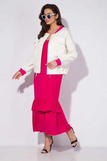 Костюм с платьем 151к белый + фуксия Liliana-style